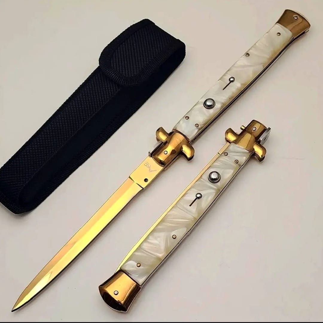 Akc 33 cm Beyaz Gold Sedef Kabze İtalyan Stiletto, malzeme odaklı dengeli yapısı ile günlük taşıma ve koleksiyon tercihleri arasında dikkat çeker. Toplam uzunluğu 33 cm, bıçak bölümünde 9Cr18MoV Paslanmaz Çelik kullanılmıştır, Çelik kabza yapısı tutuş hissini destekler. Gold-Beyaz renk detayı görsel karakterini güçlendirir, ürün tipi olarak Katlanır Bıçak sınıfında yer alır, kılıf detayı taşıma düzenini tamamlar, kullanım alanı olarak günlük kullanım için değerlendirilebilir.