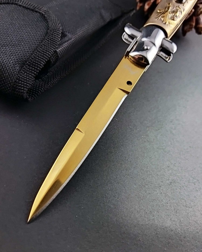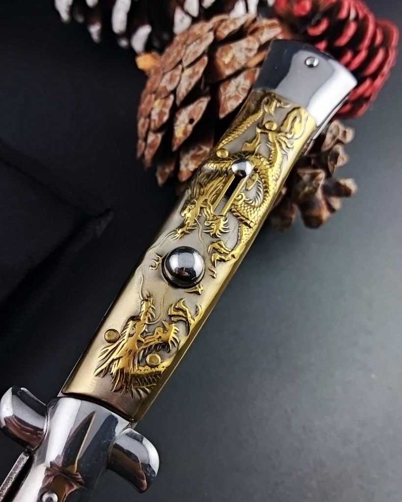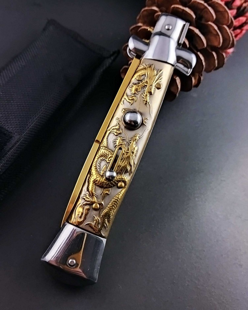 Akc Gold Ejderha İtalyan Stiletto, dikkat çeken yüzey detayları ile öne çıkan bir modeldir. Toplam uzunluğu 25 cm, bıçak bölümünde Paslanmaz Çelik kullanılmıştır, Ahşap Kabze kabza yapısı tutuş hissini destekler. Gold renk detayı görsel karakterini güçlendirir, ürün tipi olarak Katlanır Bıçak sınıfında yer alır, kompakt yapısı sayesinde çanta veya cep taşımaya uygundur, kullanım alanı olarak günlük kullanım için değerlendirilebilir.