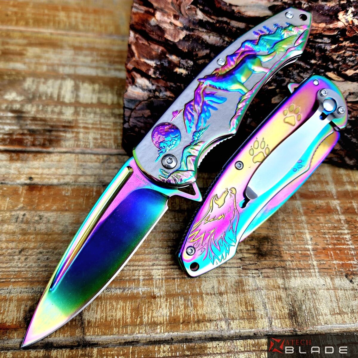 Browning Gökkuşağı Kurt Desenli Otomatik Kamp Çakısı