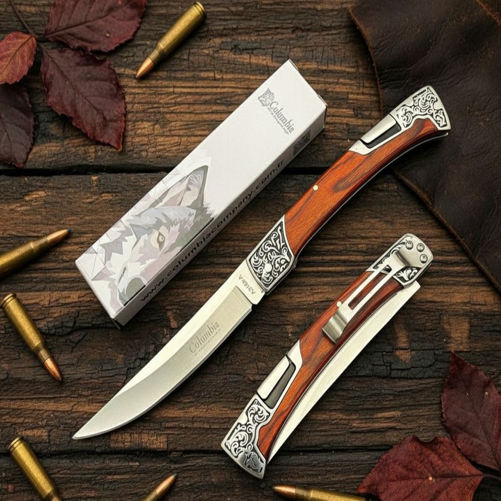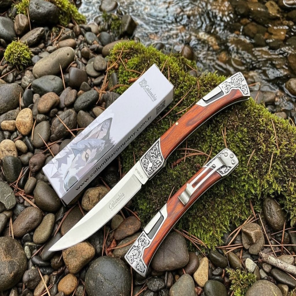 Columbia Company A3165-A İşlemeli Manuel Kamp Çakısı, kontrollü kullanım yapısı ile pratik kullanımı destekleyen bir yapıya sahiptir. Toplam uzunluğu 24 cm, namlu uzunluğu 13 cm, bıçak bölümünde 7cr13mov Paslanmaz Çelik kullanılmıştır, Hakiki Gül Ağacı kabza yapısı tutuş hissini destekler. Ürün tipi olarak Katlanabilir Manuel Çakı sınıfında yer alır, kemer klipsi taşıma kolaylığı sağlar, kullanım alanı olarak kamp, avcılık, outdoor ve günlük kullanım için değerlendirilebilir.