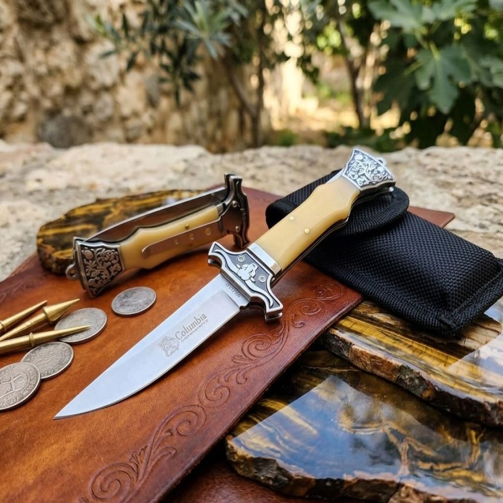 Columbia MA123-D Öküzbaş İşlemeli Kemik Kabze Kamp Çakısı