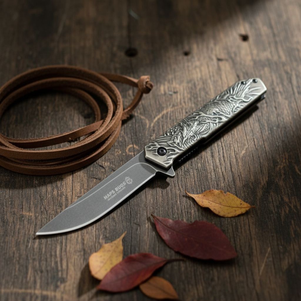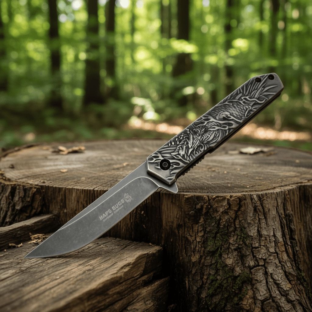 Haps Bugs HC-023 BK Black Anka Kuş Motifli Kamp Çakısı, hızlı açılış karakteri sayesinde hem görünüm hem kullanım tarafında dengeli bir yapı sunar. Toplam uzunluğu 22 cm, kapalı uzunluğu 10 cm, bıçak bölümünde 8Cr13MoV Çelik kullanılmıştır, Stonewash Kaplama kabza yapısı tutuş hissini destekler. Eskitme Gri renk detayı görsel karakterini güçlendirir, kullanım alanı olarak kamp, outdoor, koleksiyon için değerlendirilebilir.
