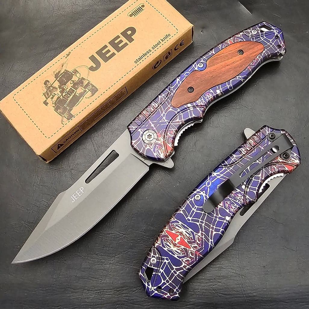 Jeep T48A Renkli Ahşap Kabze Kamp Çakısı