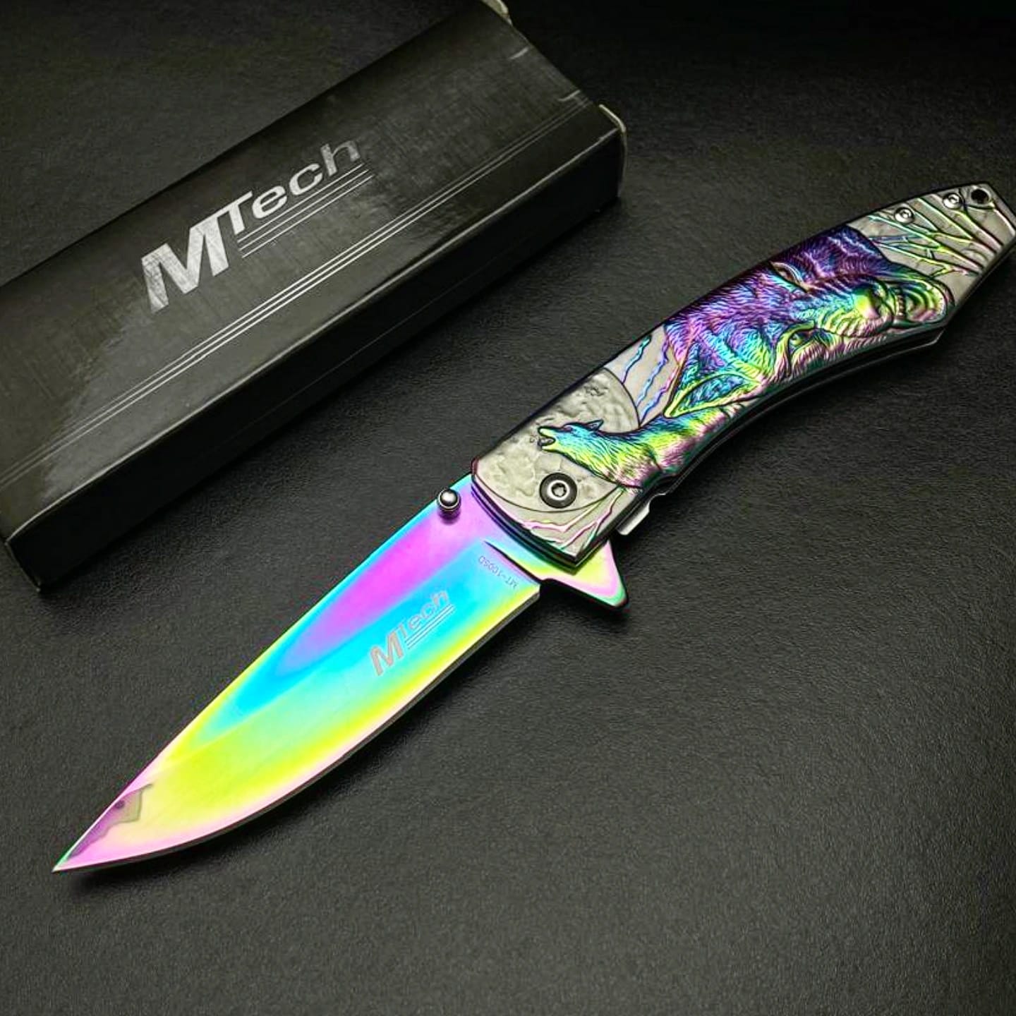 Mtech MT-1005D Gökkuşağı Kurt İşlemeli Kamp Çakısı