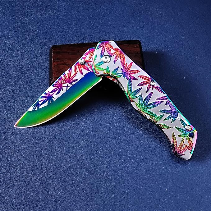 Sibirya Company GökkuşağI Yaprak Desenli Yarı Otomatik Kamp Çakısı, hızlı açılış karakteri ile günlük taşıma ve koleksiyon tercihleri arasında dikkat çeker. Toplam uzunluğu 23 cm, bıçak bölümünde 9Cr18MoV Paslanmaz Çelik kullanılmıştır, Çelik kabza yapısı tutuş hissini destekler. Gökkuşağı renk detayı görsel karakterini güçlendirir, ürün tipi olarak Katlanır Bıçak sınıfında yer alır, kemer klipsi taşıma kolaylığı sağlar, kompakt yapısı sayesinde çanta veya cep taşımaya uygundur, kullanım alanı olarak günlük kullanım için değerlendirilebilir.