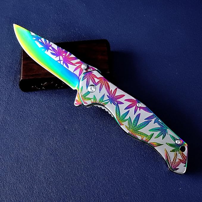 Sibirya Company GökkuşağI Yaprak Desenli Yarı Otomatik Kamp Çakısı
