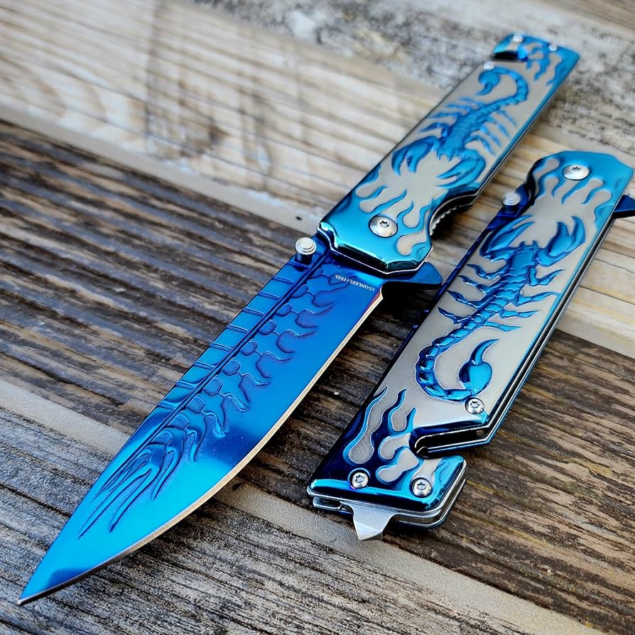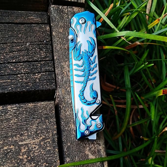 Sibirya Company S2706-X Mavi Akrep İşlemeli Kurtarma Kamp Çakısı, hızlı açılış karakteri ile öne çıkan bir modeldir. Toplam uzunluğu 22,5 cm, bıçak bölümünde 9Cr18MoV Paslanmaz Çelik kullanılmıştır, Metal kabza yapısı tutuş hissini destekler. Mavi renk detayı görsel karakterini güçlendirir, ürün tipi olarak Katlanır Bıçak sınıfında yer alır, kompakt yapısı sayesinde çanta veya cep taşımaya uygundur, kullanım alanı olarak günlük kullanım için değerlendirilebilir.